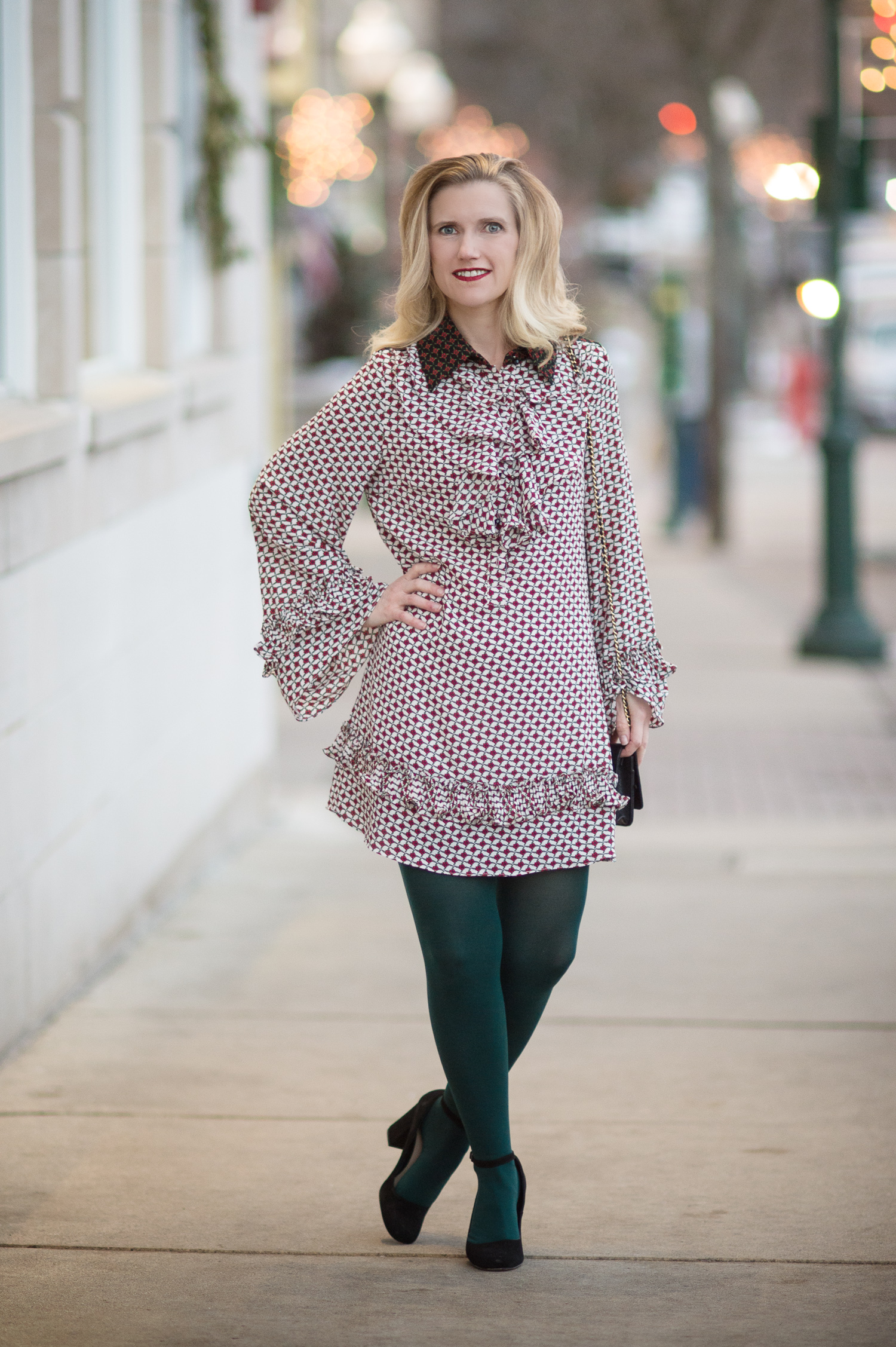 I love those Tights. They really are the perfect accent to that lovely dress. Such a nice outfit for the holidays.