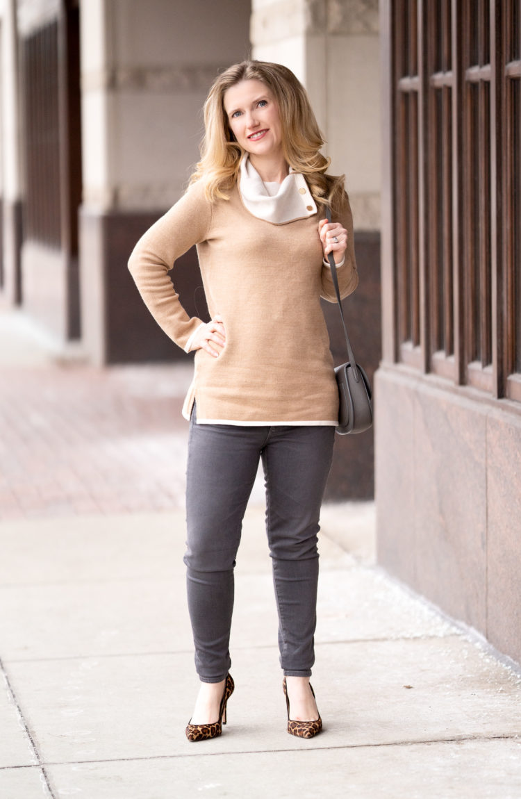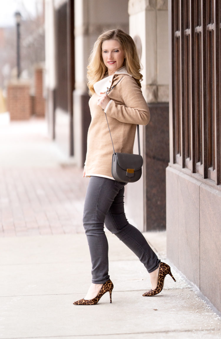 Check out my huge Amazon winter fashion haul here! Hey everyone! So happy Friday is here and I am looking forward to a “somewhat” relaxing weekend. We are headed to a tea party at one of the local businesses tonight, and that should be fun. I wanted to share with you one of the office looks I wore during the week. During the winter so often I gravitate toward dark colored pants, leggings and dresses. But now that the end of February is here, I feel inspired to change things…