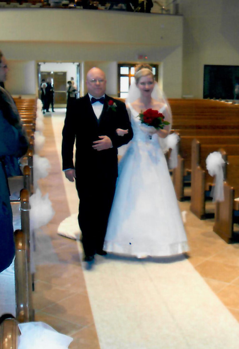 (My dad walking me down the aisle on my wedding day – sorry for the blurry snapshot but it’s what I have)