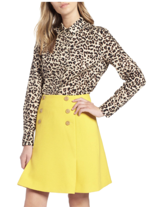 There are so many nice leopard/cheetah tops that are available this season. I love this classic Rebecca Taylor pullover. This cashmere sweater would be great for a chilly day. For a more affordable option, this peplum leopard top would be perfect! And if you just want to wear a hint of leopard this or this cami would be a great base for layering.